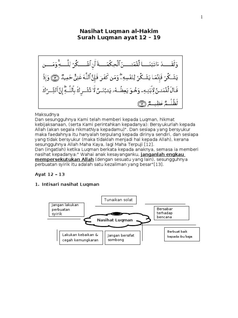 Jelaskan Isi Kandungan Q S Al Luqman Ayat 13 14 Dan Mengapa Nasihat Luqman Tsb Sangat Penting Brainly Co Id