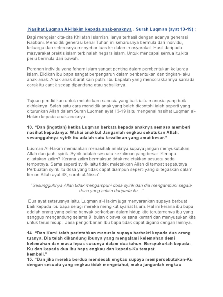 Lbh Licin Olbhiitxro O Antara Nasihat Luqman Al Hakim Kepada Anaknya Dalam Ayat Di Atas Pdf Document