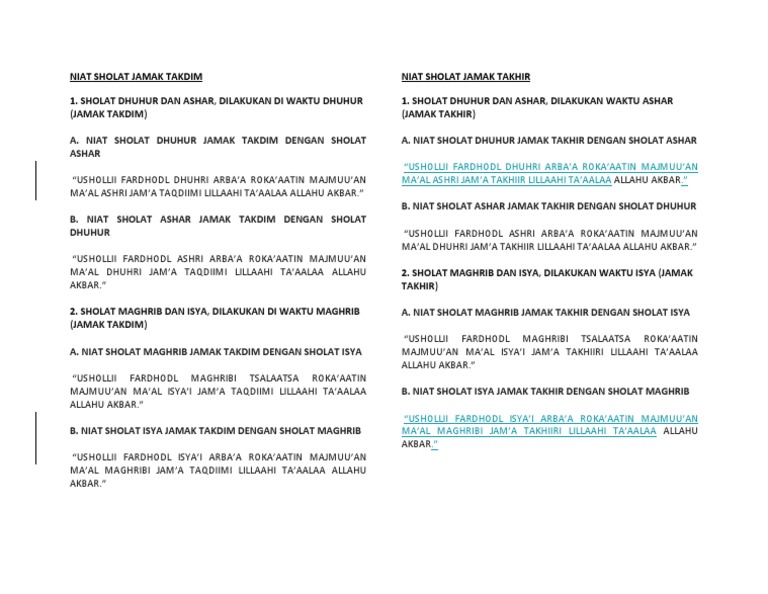 Niat Sholat Jamak Qasar Duhur Isya Magrib Ashar Brainly Co Id