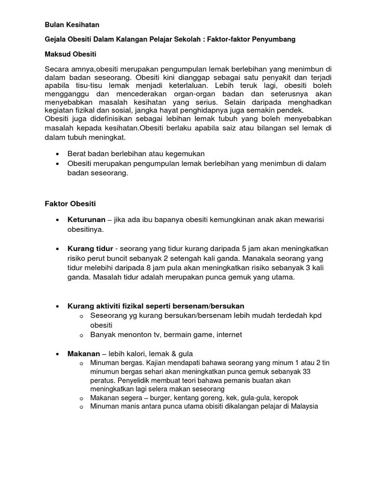 Obesiti di kalangan pelajar. Selain itu katanya inisiatif hidangan berkhasiat di sekolah hits turut diperkenalkan di semua sekolah selain program cara hidup anda terbaik c hat pula diketengahkan dalam kalangan ibu bapa bagi memberi pendedahan mengenai masalah obesiti melibatkan golongan pelajar. Obesiti dalam kalangan kanak kanak di malaysia membimbangkan astro awani. Saya wanita berumur 27 tahun sebelum ni saya mengalami sakit dada dan muntah2 bila saya pergi klinik doc cakap saya ada angin dalam badan dan diberi ubat molax m. Academia edu is a platform for academics to share research papers.