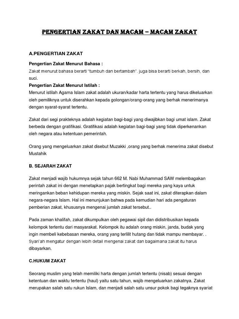 Zakat Fitrah Dan Zakat Mal