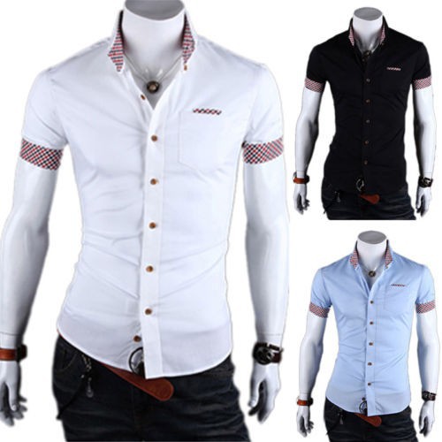 Lelaki Mewah Slim Fit Pakaian Formal Baju Pendek Sleeve Kasual Bergaya T Shirt Atas Shopee Malaysia