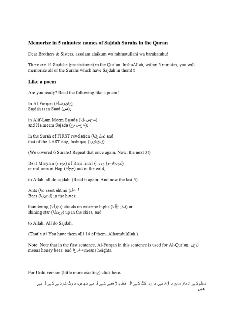 Sajdah Suras In The Qruan Surah Quran