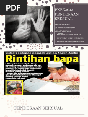 Kesan kesan penderaan seksual terhadap kanak kanak ialah kecederaan fizikal jiwa dan emosi bagi jangka masa tertentu. Sila ambil perhatian bahawa tidak kesemua tanda tanda ini menunjukkan kes penderaan seksual. Proses tindakan bagi aduan kes penderaan kanak kanak terima aduan catat maklumat pengadu catat maklumat kanak kanak catat maklumat pendera adakan lawatan ke rumah tempat kejadian sub seksyen 8 1 maklumkan tujuan lawatan adakan temubual berasingan jika perlu periksa tubuh badan mangsa dapatkan bantuan polis jika perlu kenal pasti jenis penderaan sub seksyen 17 1 a k. Penderaan seksual terdiri daripada pelbagai tindakan berbentuk seksual di antara seorang kanak kanak dan seorang dewasa atau kanak kanak yang lebih tua.