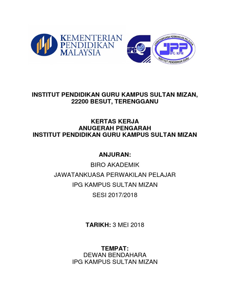 Kertas Kerja Hari Anugerah Pengarah Sem 1 2018