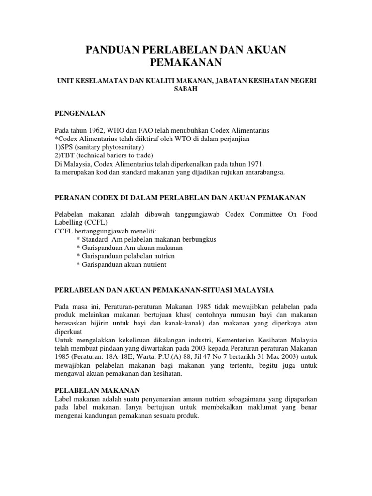 Panduan Perlabelan Dan Akuan Pemakanan