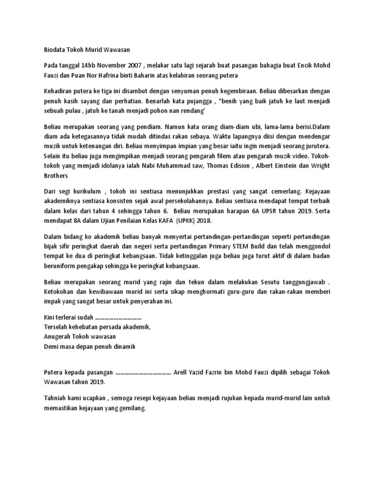Biodata Tokoh Murid Wawasan