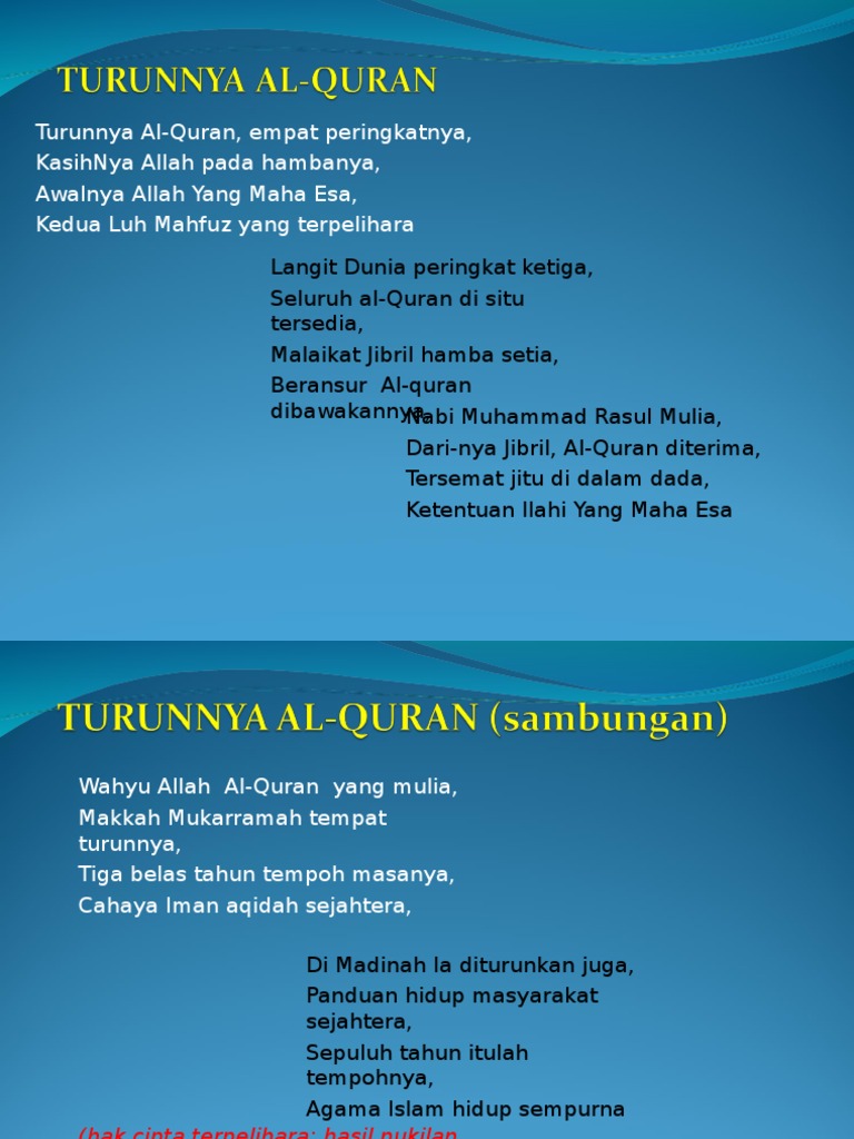Menurunkan al quran secara berperingkat peringkat. Terdapat tiga pandangan mengenai hal ini iaitu. Penurunan secara berperingkat peringkat memudahkan mereka menghafal ayat ayat al quran. Rencana ini mengemukakan satu kajian tentang asal usul dan sejarah al quran dari segi cara wahyu diturunkan peringkatnya tempat turunnya masanya awalnya dan akhirnya.
