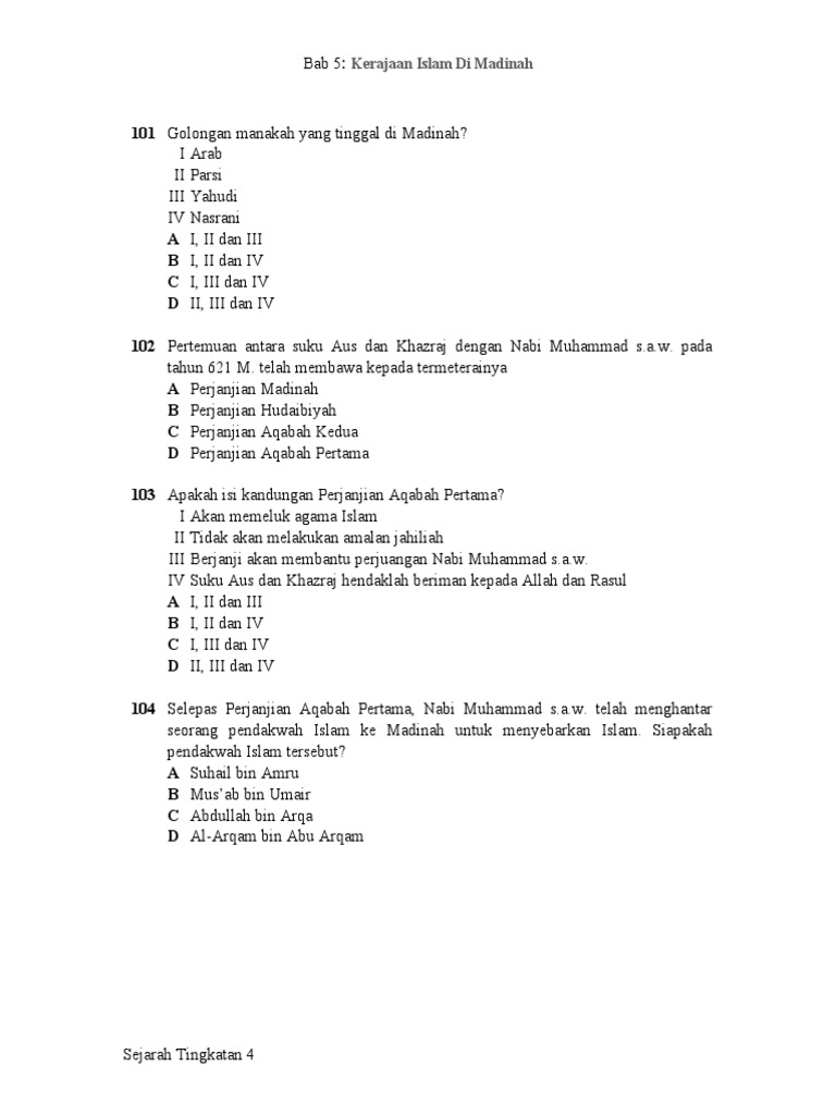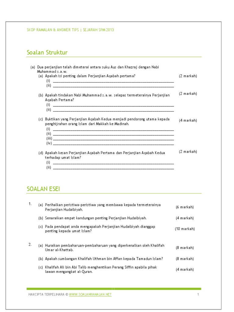Soalan Esei Sejarah Tingkatan 4 Perjanjian Hudaibiyah Persoalan S