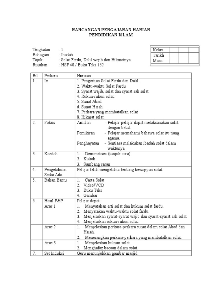 Kurikulum Bersepadu Dini Kdb As Syariah Ting 1 Nota Solat Bergambar