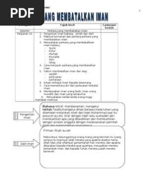 Perkara Yang Membatalkan Iman Tingkatan 4 Nota Ringkas