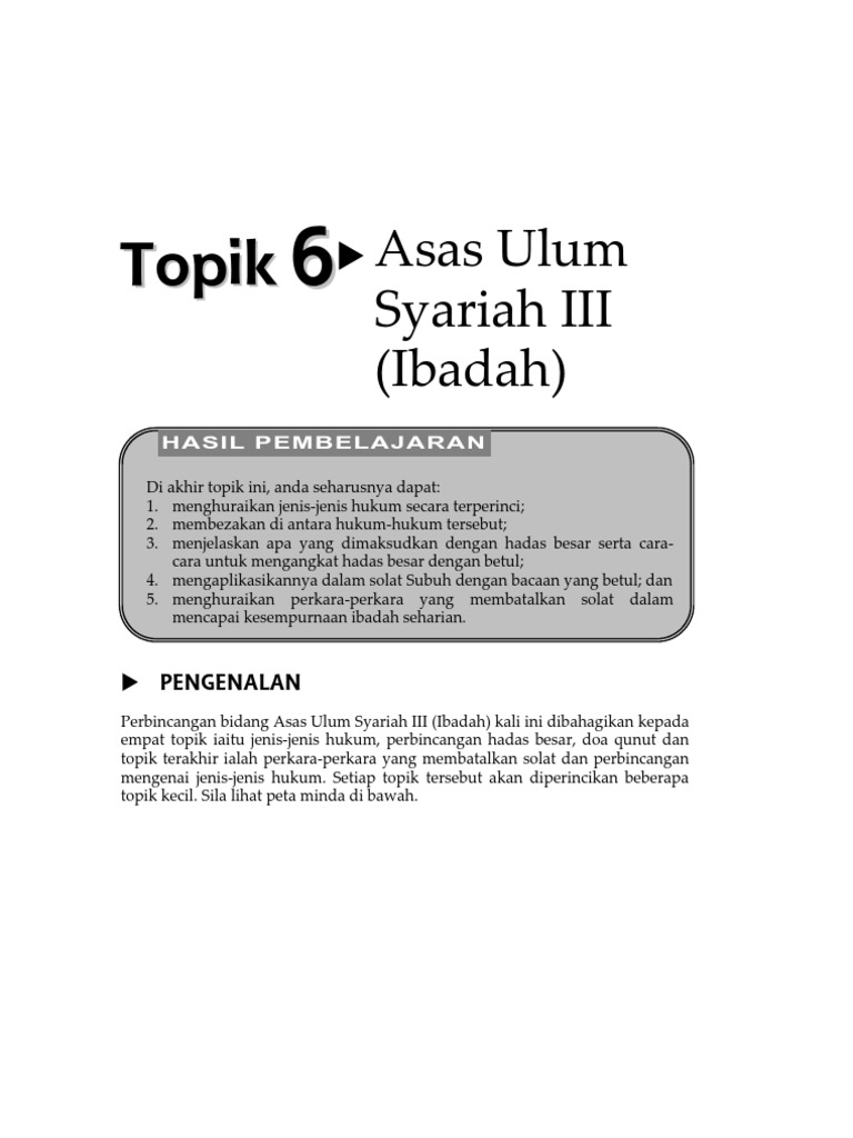 Perkara Yang Membatalkan Wuduk Wuduk Tahun 1