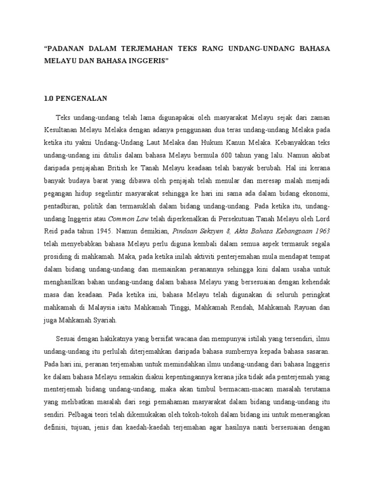 Padanan Makna Teks Rang Undang Undang