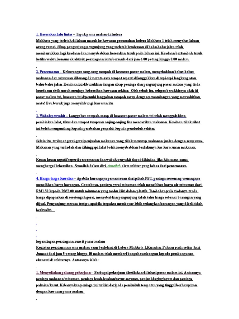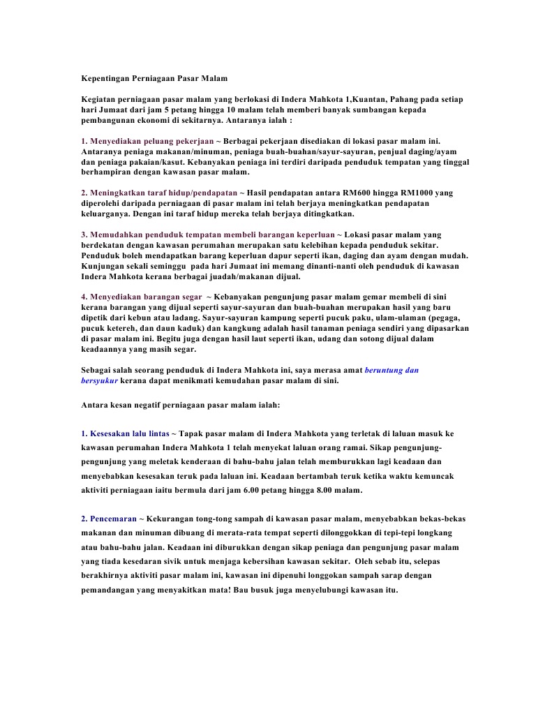 Antara Kesan Negatif Perniagaan Pasar Malam Ialah