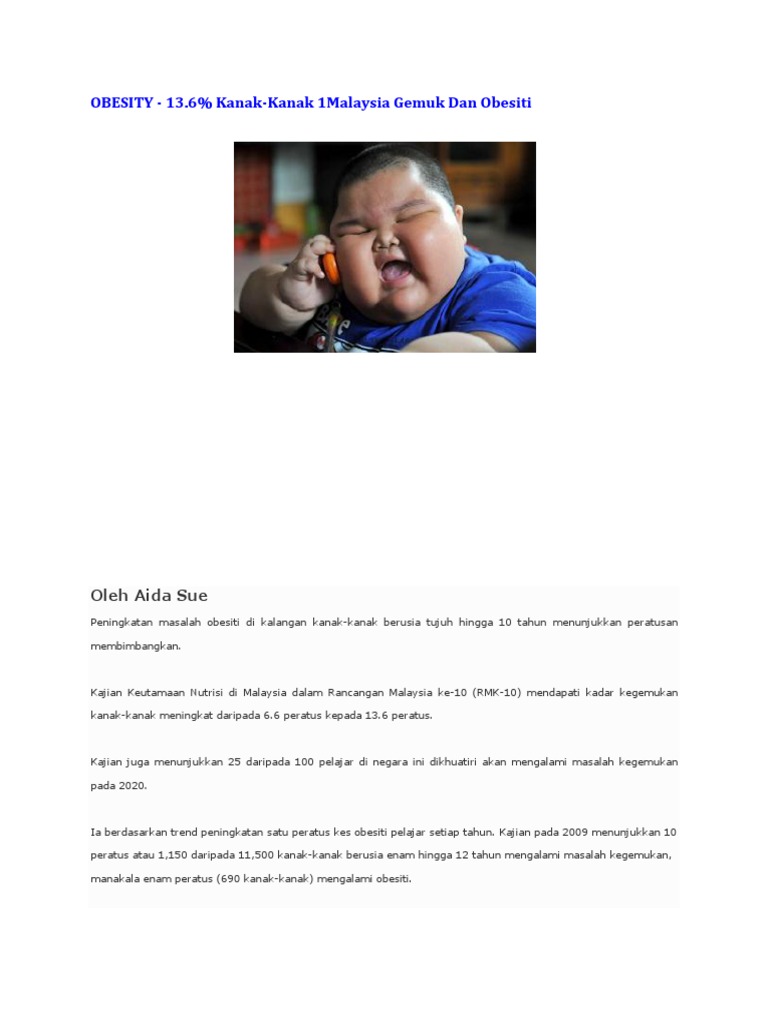 Masalah Obesiti Di Kalangan Kanak Kanak Semakin Serius Dianesera Com