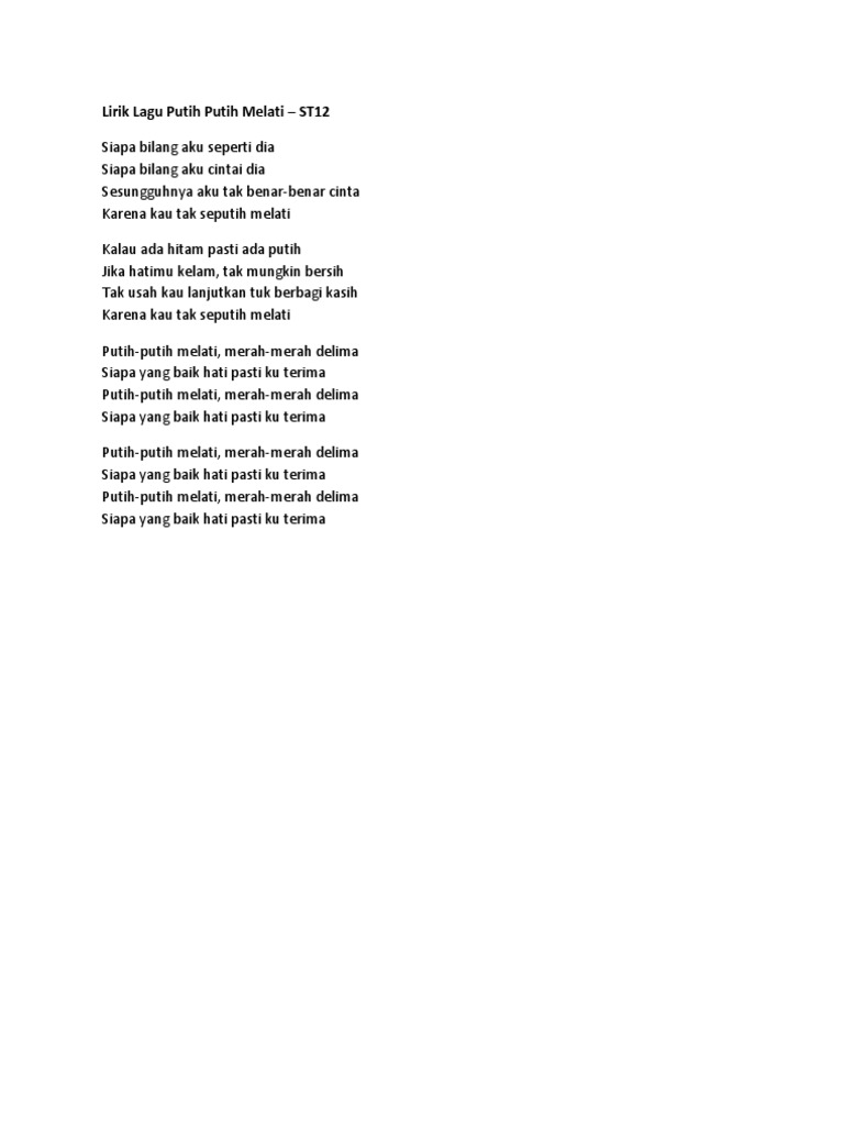 Belum ada info detil tentang single ini. Download st12 putih putih melati mp3. Single lainnya dari di antaranya nagata lagu ikan yahfajar mafi ku sapa hello 11. Tak usah kau lanjutkan tuk berbagi kasih.