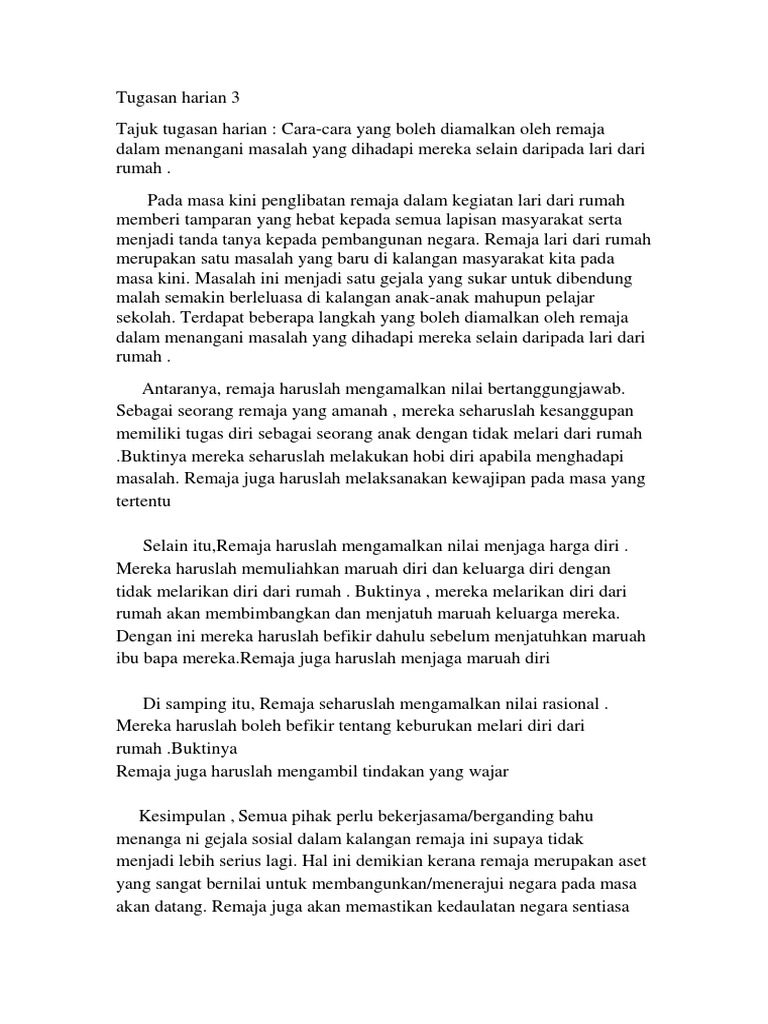 Punca Remaja Lari Dari Rumah Karangan Spm