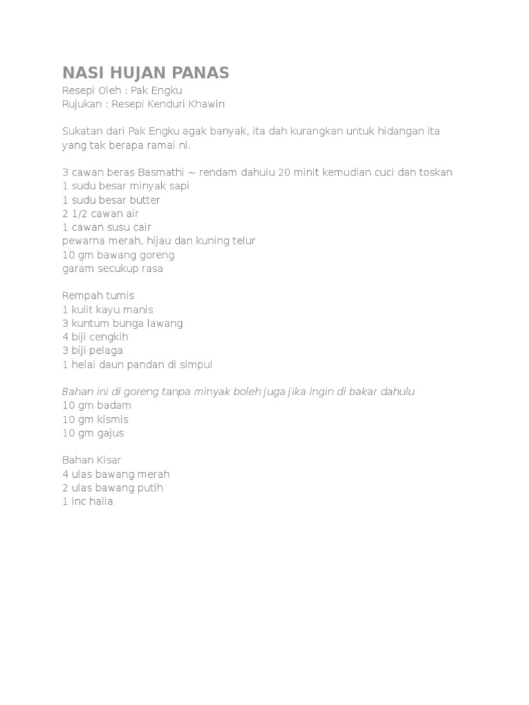 Resepi Nasi Hujan Panas Docx