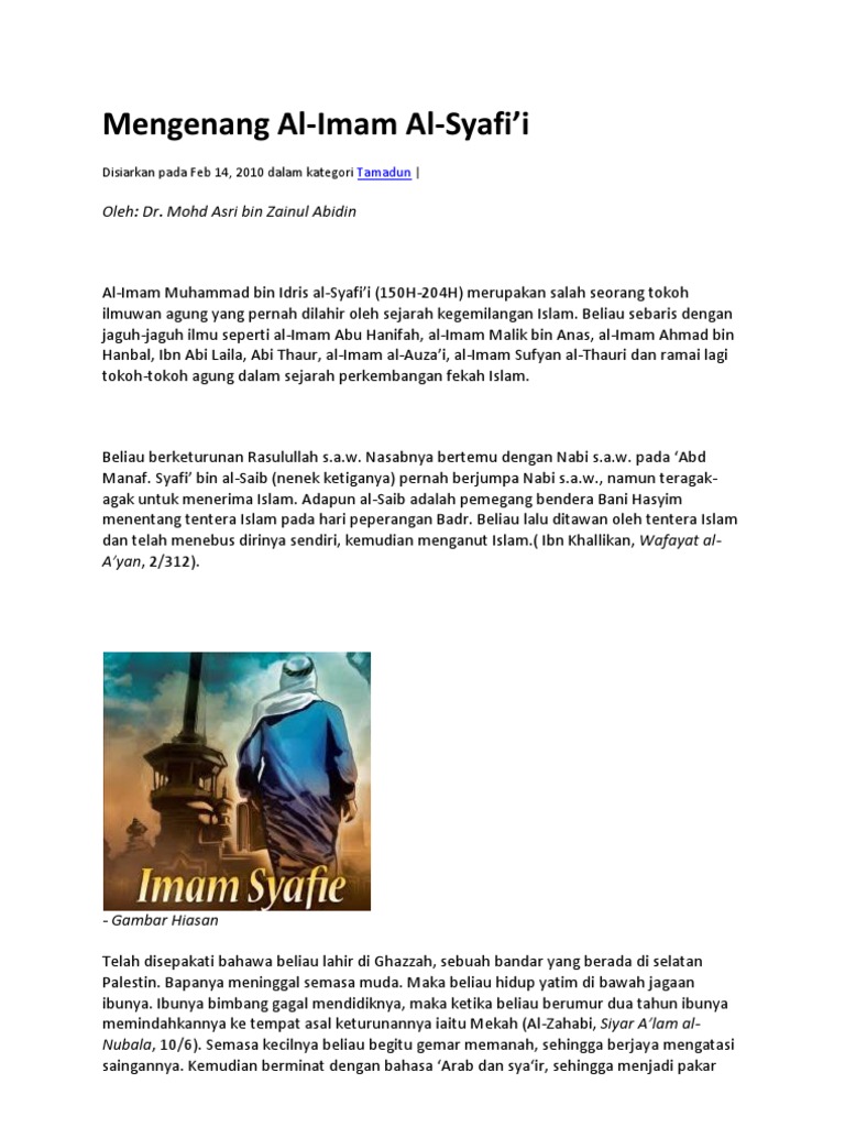 Riwayat hidup imam syafie. Riwayat hidup imam syafie secara ringkas pengenalan imam syafie rahimahumullah r adalah seorang ulama besar yang tidak asing lagi dan amat terkenal di kalangan umat islam sejak dahulu hingga kini. Ringkasan riwayat hidup 4 imam pengasas mazhab. Riwayat hidup imam shafie. Gurunya yang pertama secara tidak formal ialah ibunya sendiri.