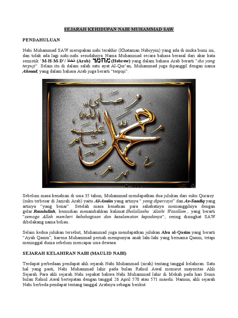 Riwayat hidup nabi muhammad saw sehingga dilantik menjadi rasul. Muhammad bin abdullah dikenal. محمد بن عبد الله. Madinah arab saudi 8 juni 632 m orang tua. Thanks for supporting prepared by 4firdaus najwa irdina nurul qaisha khaleeda hanin nuraina najihah part 1 kehidupan nabi muhammad s a w.