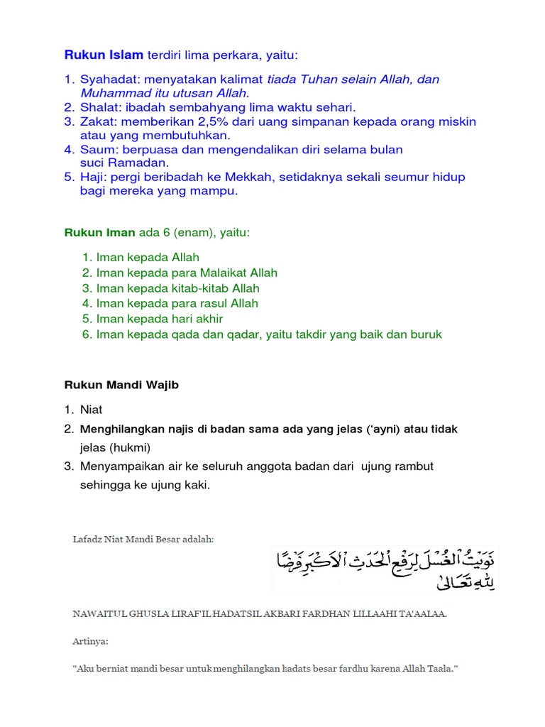 Rukun Iman Dan Rukun Islam Beserta Penjelasannya
