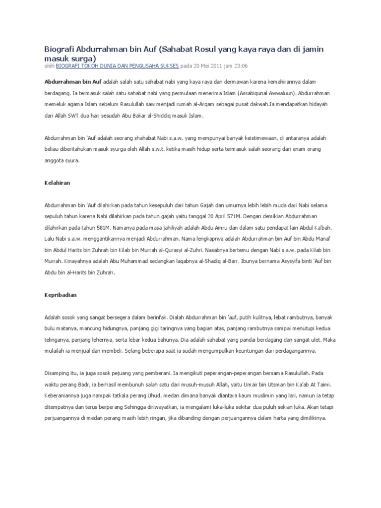 Abdurrahman Bin Auf Yang Kaya Dan Dermawan Artikel Wikipedia