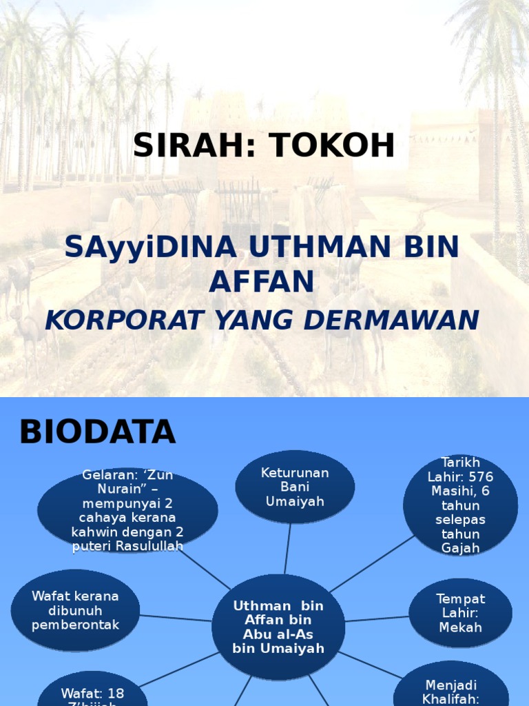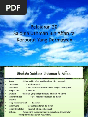 Saidina uthman ketika hayat baginda saw mempunyai sumbangan yang sangat besar. Link http gg gg subjektif part2uthman sifat sifat peribadi saidina uthman bin affan. Masalah ini telah dapat diselesaikan oleh abd al rahman bin auf yang diamanahkan untuk meninjau dan bertanyakan kepeda mereka tentang kesanggupan menerima jawatan khalifah. Sirah pendidikan islam tingkatan 2 kssm draft.