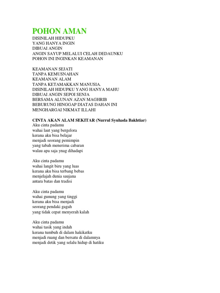 Alam keindahan mu semakin mehilang ini adalah perbuatan manusia yang tamak. Disuatu ketika pagi itu fajar hanya baru sejengkal membuka tirai. Koleksi pantun dan sajak pantun adalah satu satunya karya asli orang melayu. Pohon aman disinilah hidupku yang hanya ingin dibuai angin angin sayup melalui celah dedaunku pohon ini inginkan keamanan.