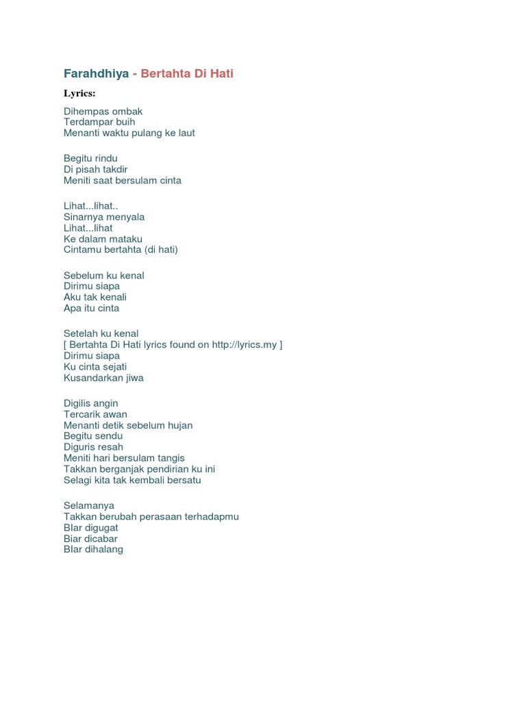 Bertakhta Di Hati Lyrics Farahdhiya Kkbox