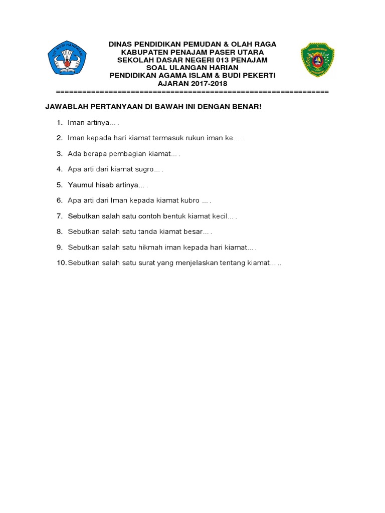 Soal Ulangan Kls 6