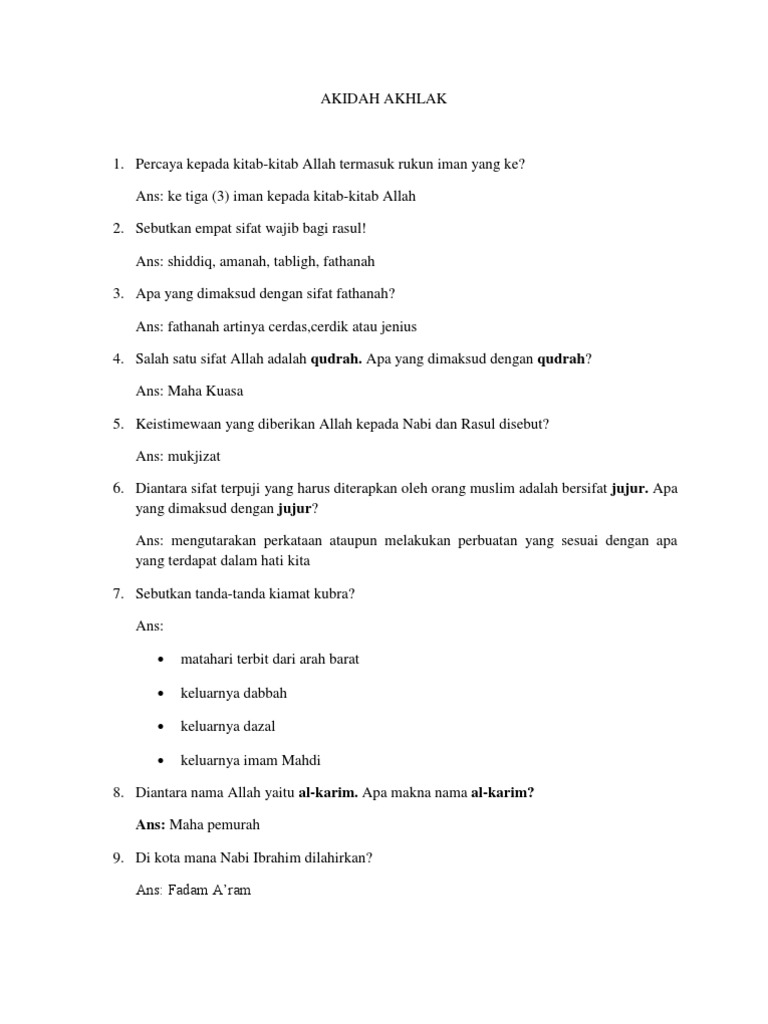 Sifat Wajib Dan Mustahil Bagi Allah Beserta Artinya Brainly Co Id