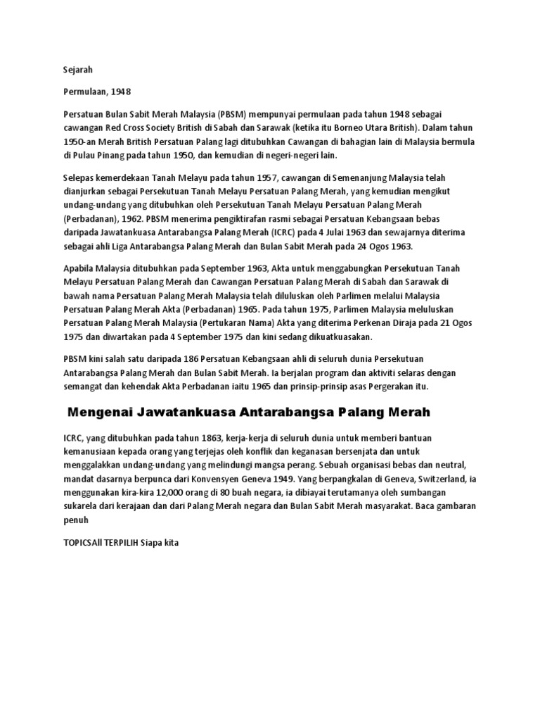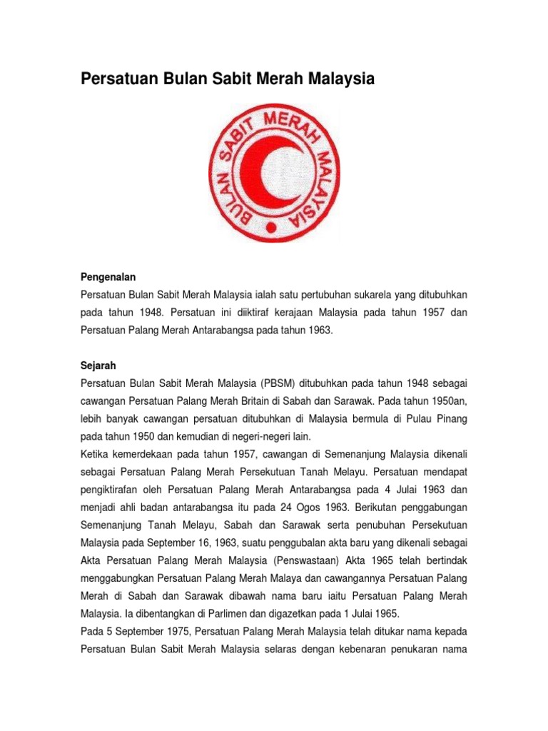 Sejarah Penubuhan Bulan Sabit Merah Malaysia Doc Document