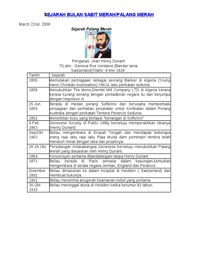 Penggunaan simbol bulan sabit merah pertama kali dalam perang pada saat konflik bersenjata kekaisaran ottoman dan rusia 1877 1878. Persatuan ini diiktiraf kerajaan malaysia pada tahun 1957 dan persatuan palang merah antarabangsa pada tahun 1963 sejarah permulaanbulan sabit merah malaysia pbsm ditubuhkan pada tahun 1948 sebagai cawangan persatuan palang merah britain di sabah dan sarawak. Sejarah berdirinya palang merah dan bulan sabit merah di dunia universalitas lambang. Palang merah telah pun wujud di persekutuan tanah melayu di bawah penjajahan british sebagai a branch of the british red cross.