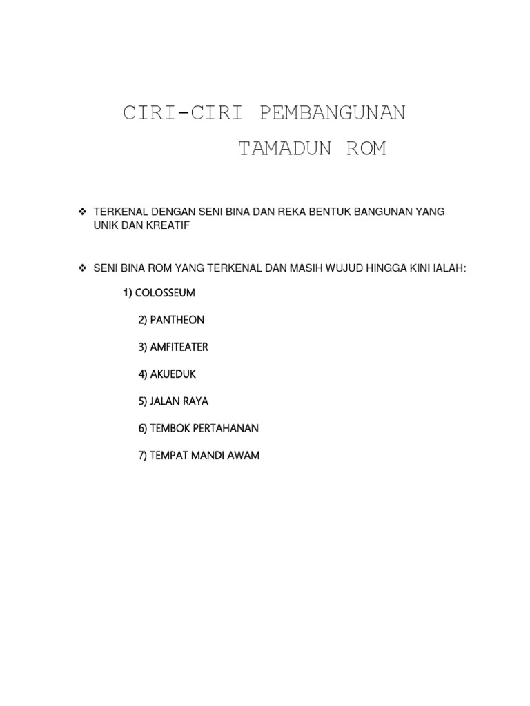 Ciri Ciri Pembangunan Tamadun Rom Terkenal Dengan Seni Bina Dan Reka Bentuk Bangunan Yang Unik Dan Kreatif