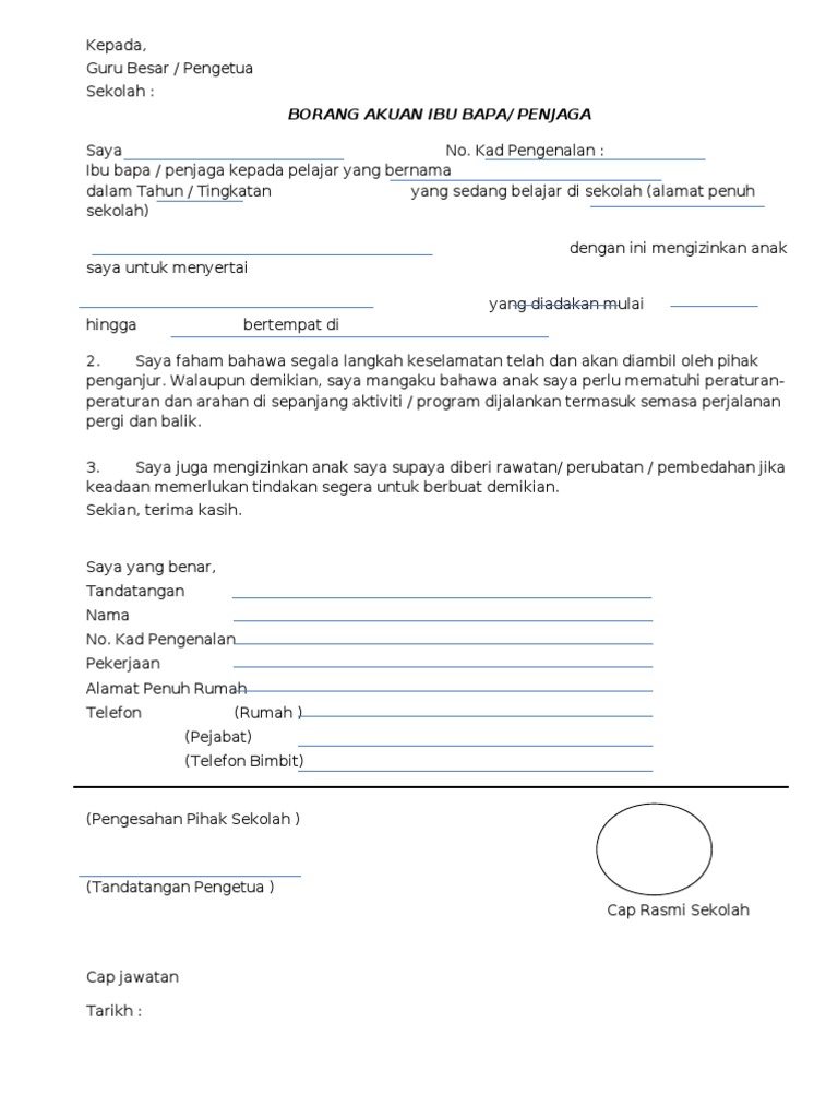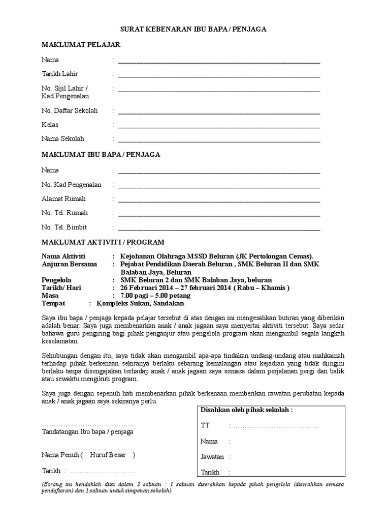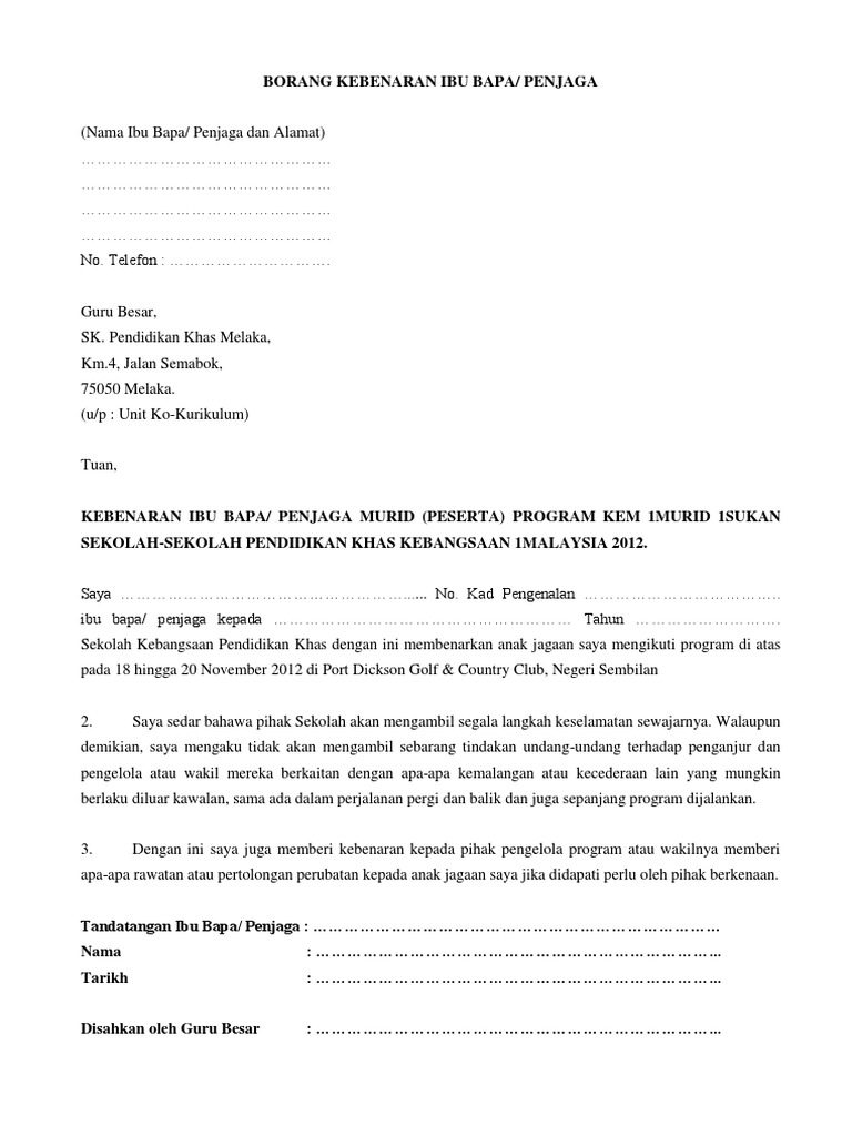 Surat Kebenaran Ibu Bapa Pages 1 3 Text Version Anyflip