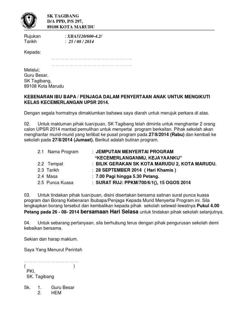 Contoh Dokumen Kebenaran Ibubapa Surat Kepada Dan Daripada