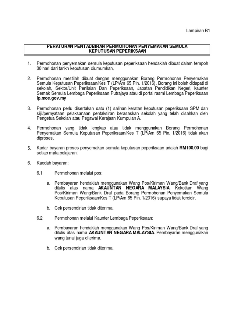 Semoga perkongsian informasi maklumat makluman pemberitahuan laman web sesawang pautan portal rasmi panduan bahan bahan rujukan bahan bahan pembelajaran dan pengajaran sumber sumber rujukan dalam post di blog bumi gemilang berguna dan dapat membantu para pengguna. Borang ini boleh didapati di sekolah sektor unit penilaian dan peperiksaan jabatan pendidikan negeri kaunter semak semula lembaga peperiksaan putrajaya. Berikut dikongsikan adalah maklumat tentang semak semula keputusan spm termasuk memaparkan panduan semakan kadar bayaran dan cara hubungi. Permohonan semak semula keputusan spm sijil pelajaran malaysia 2016.