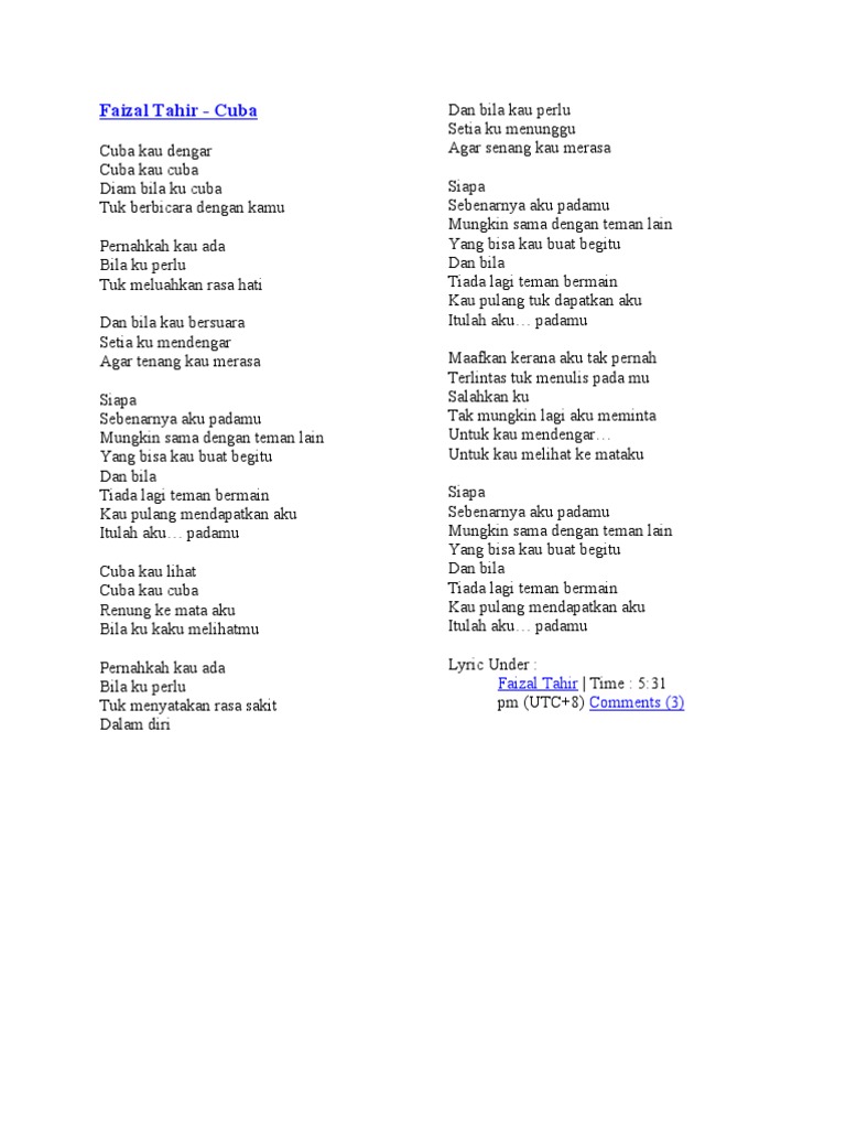 Faizal Tahir Cuba Lyrics Genius Lyrics