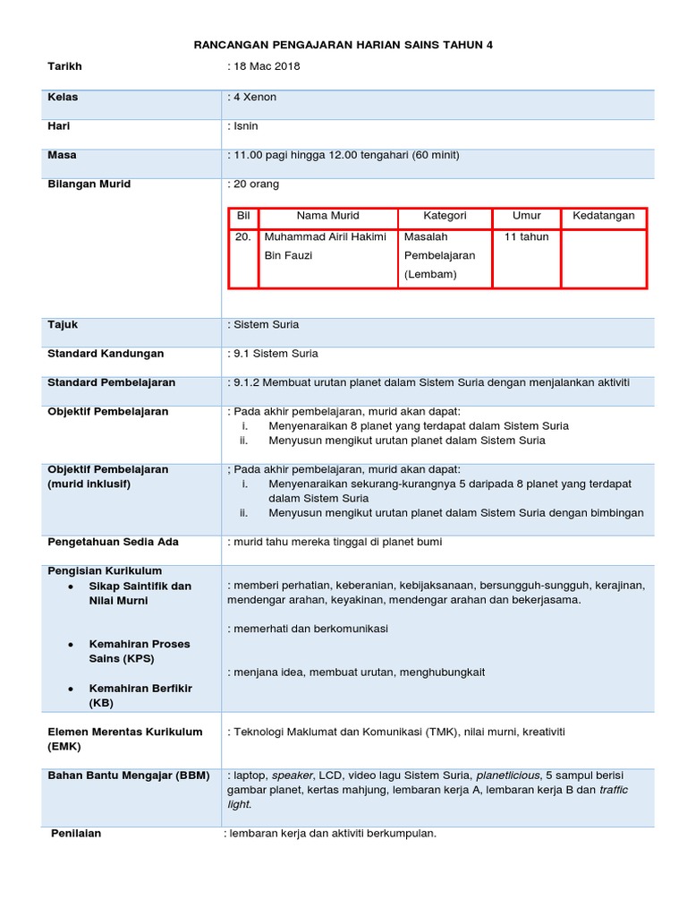Rancangan Pengajaran Harian Kssr Sains Tahun 4